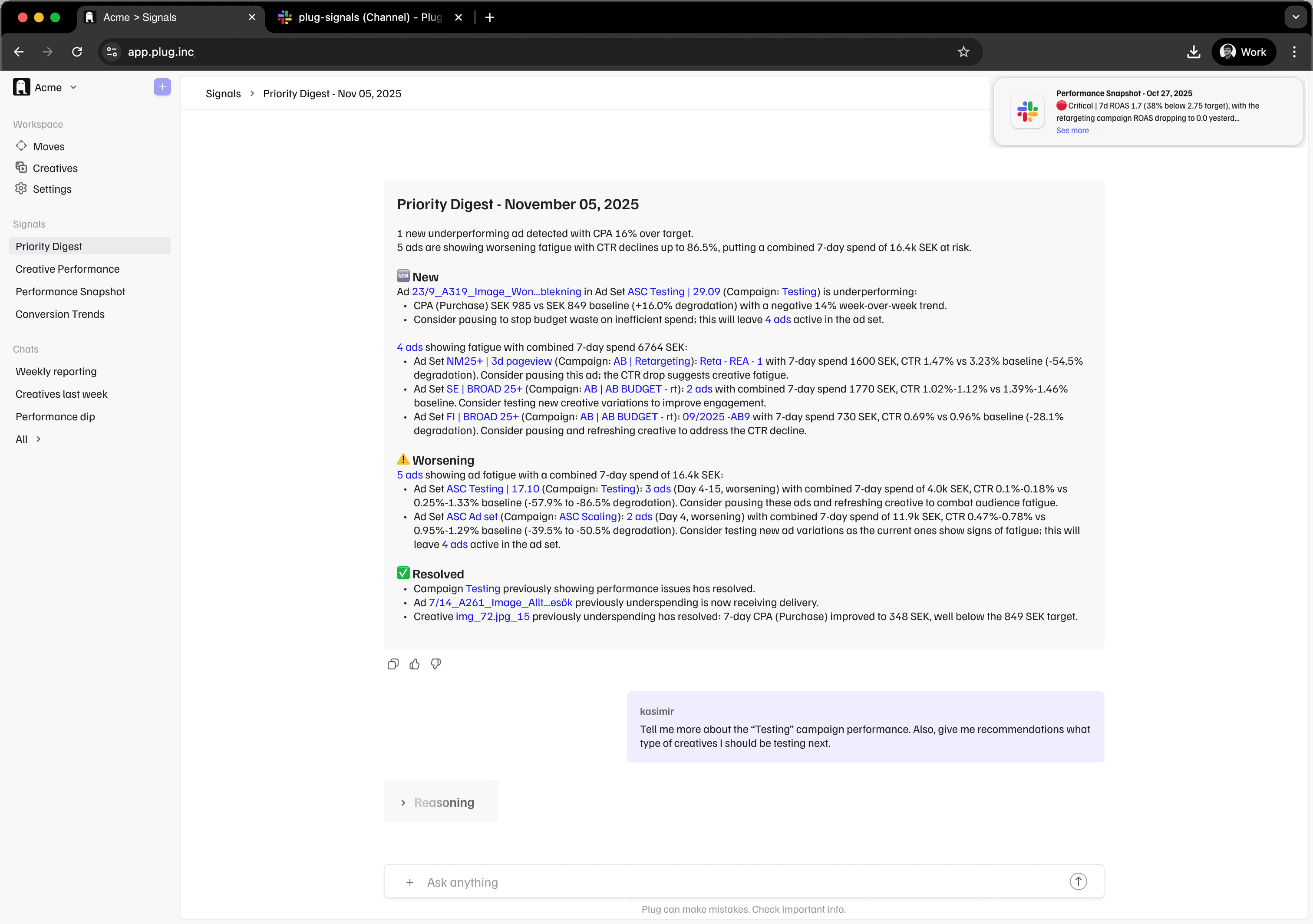 "I don't open Meta Ads Manager anymore before checking Plug Signals in Slack."