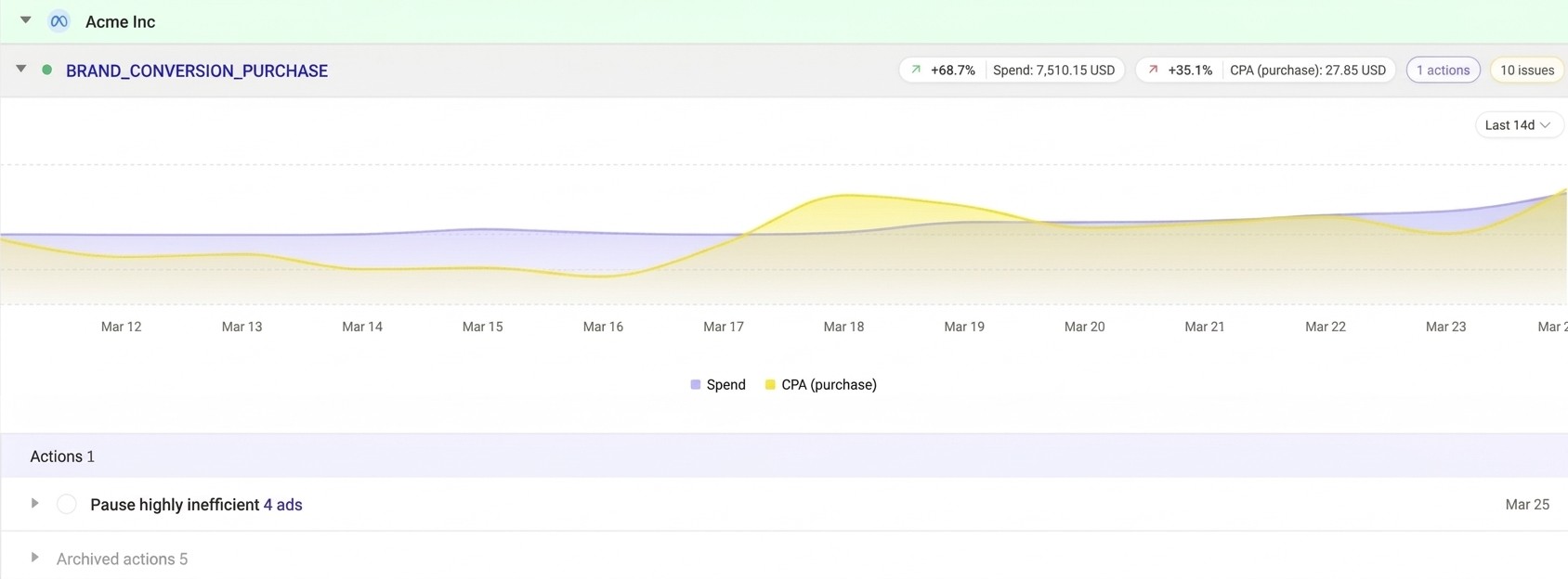 When an account underperforms, finding the root cause often means manually digging through campaigns, ad sets, and creatives. Moves brings that workflow into one place.