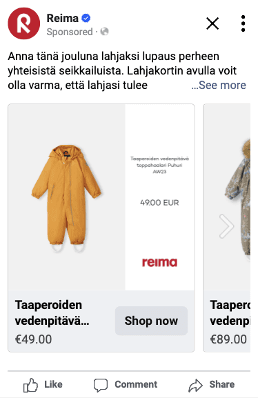 A basic Catalog ad on Meta